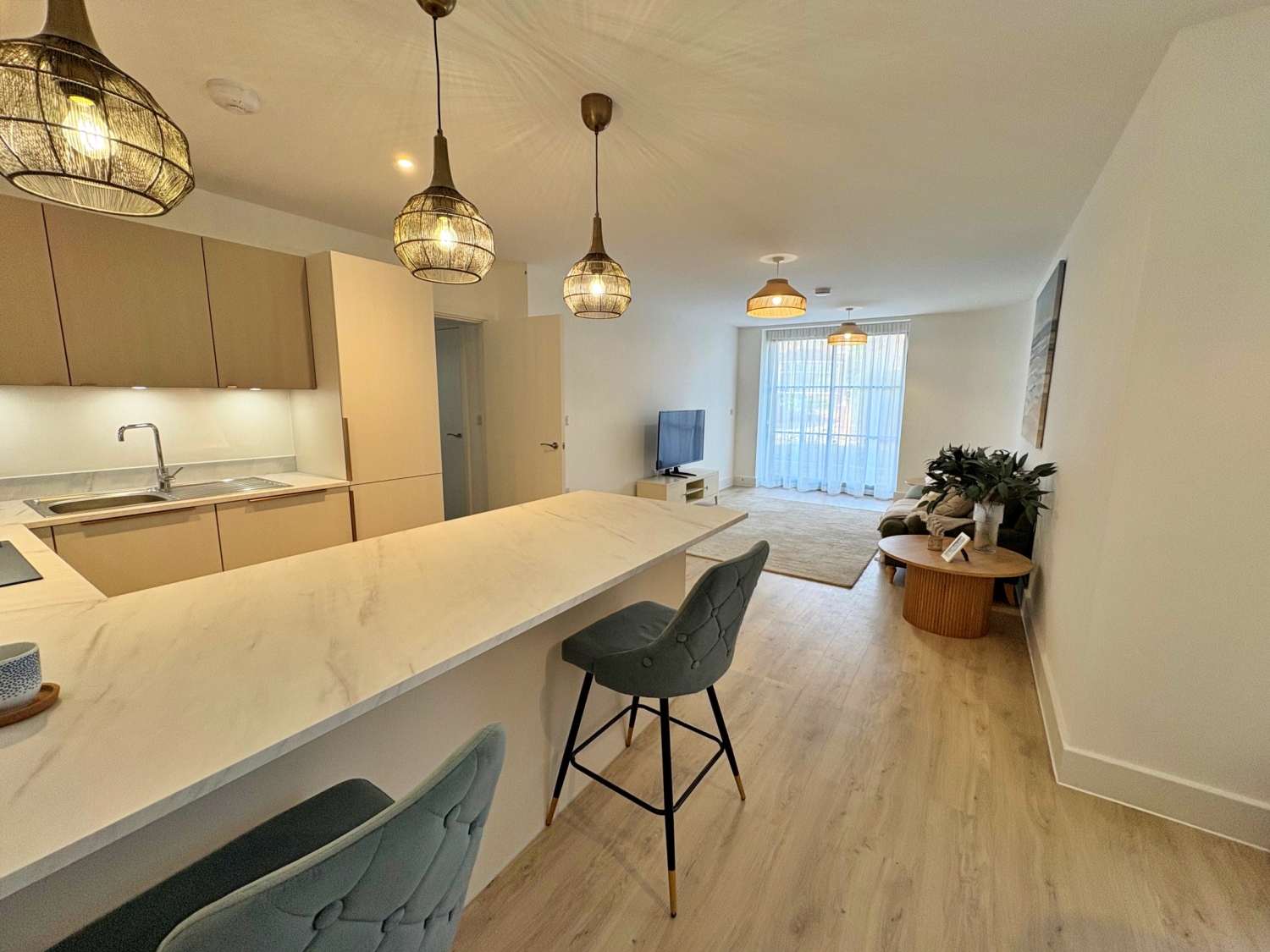 A stunning and modern two bedroom apartment just a short walk from the award winning beaches at Alum Chine and the popular village of Westbourne. A beautiful collection of just nine two-bedroom apartments and two penthouses in the highly sought-after area of Alum Chine. With award-winning beaches , these homes offer the perfect balance of seaside living and modern luxury. The development also includes allocated resident parking as well as Neff & Indesit appliances with the high end kitchens