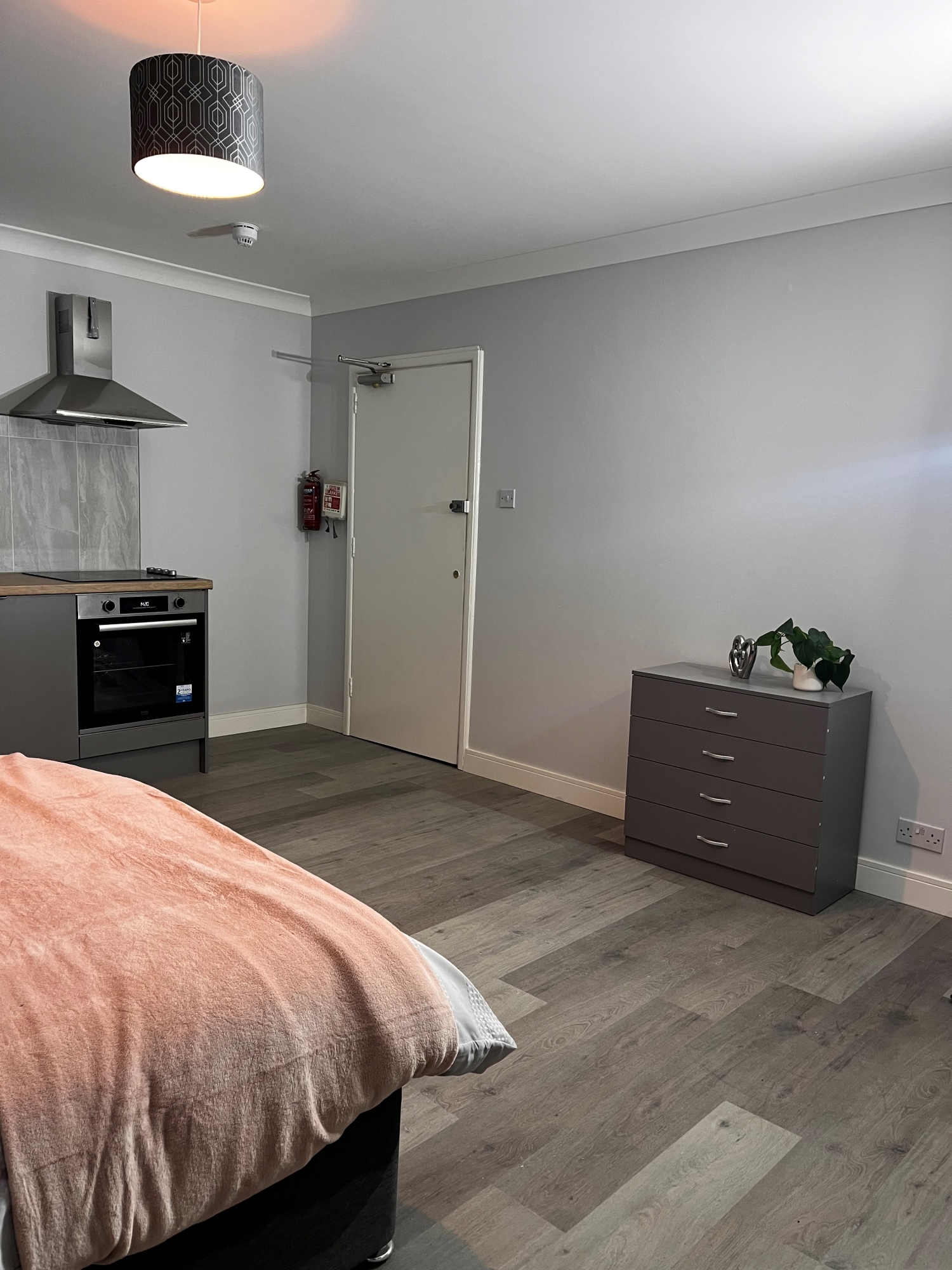 A newly renovated double-bedroom on the ground floor of a friendly house share in Parkstone, complete with its own private kitchenette. The property offers a shared bathroom, separate WC, off-street parking. The room is part-furnished with double-bed, double-mattress, chest of drawers and bedside table.