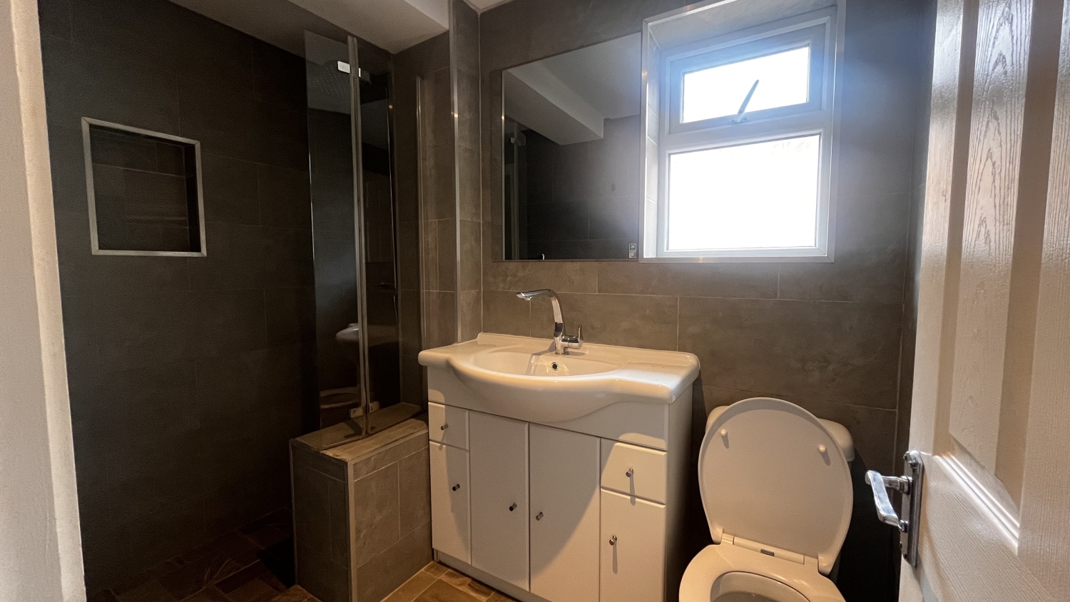 The property has 4 double bedrooms (3 upstairs, 1 downstairs), a modern separate kitchen, and a bright living room. There's a family bathroom upstairs plus a separate toilet. Outside, you'll find a private rear garden – great for kids or relaxing in the summer.