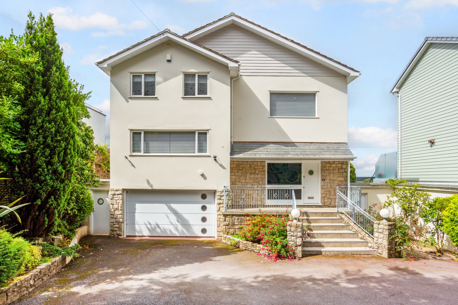 This stunning house is situated within the Canford Cliffs/Sandbanks area. Within a few minutes walk of Shore Road Beach. There are 3 double bedrooms and the 4th room is presented as a study - 2 of the bedrooms and study benefit from amazing views of Poole Harbour and Brownsea island, the remaining double bedroom is on the ground floor and leads out to the rear garden. The detached house also benefits from a double garage that also doubles up as a utility room. The rear garden is a good size with pretty borders and large grass area. This is accessed from the lower floor onto a good size patio area.