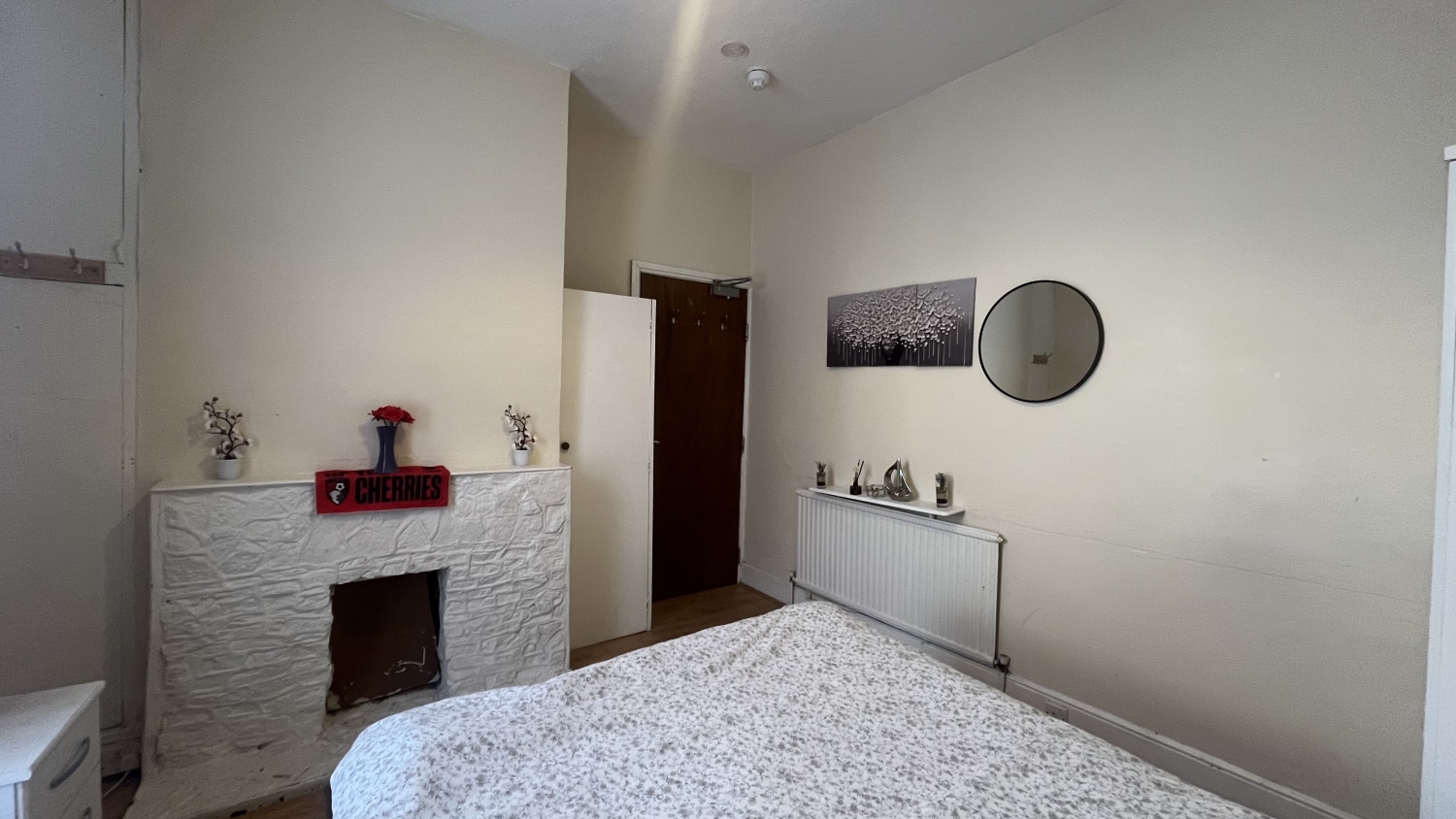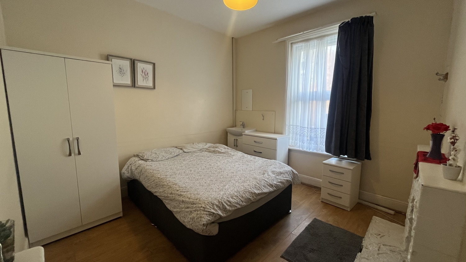 The room comes *FULLY FURNISHED* including a double bed, mattress, large fitted wardrobes/cupboards and a small fridge/freezer.