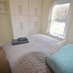 The room includes a double bed with storage, a wardrobe and a chest of drawers.