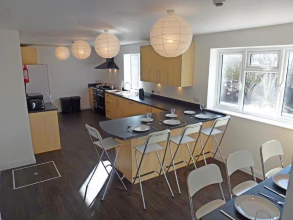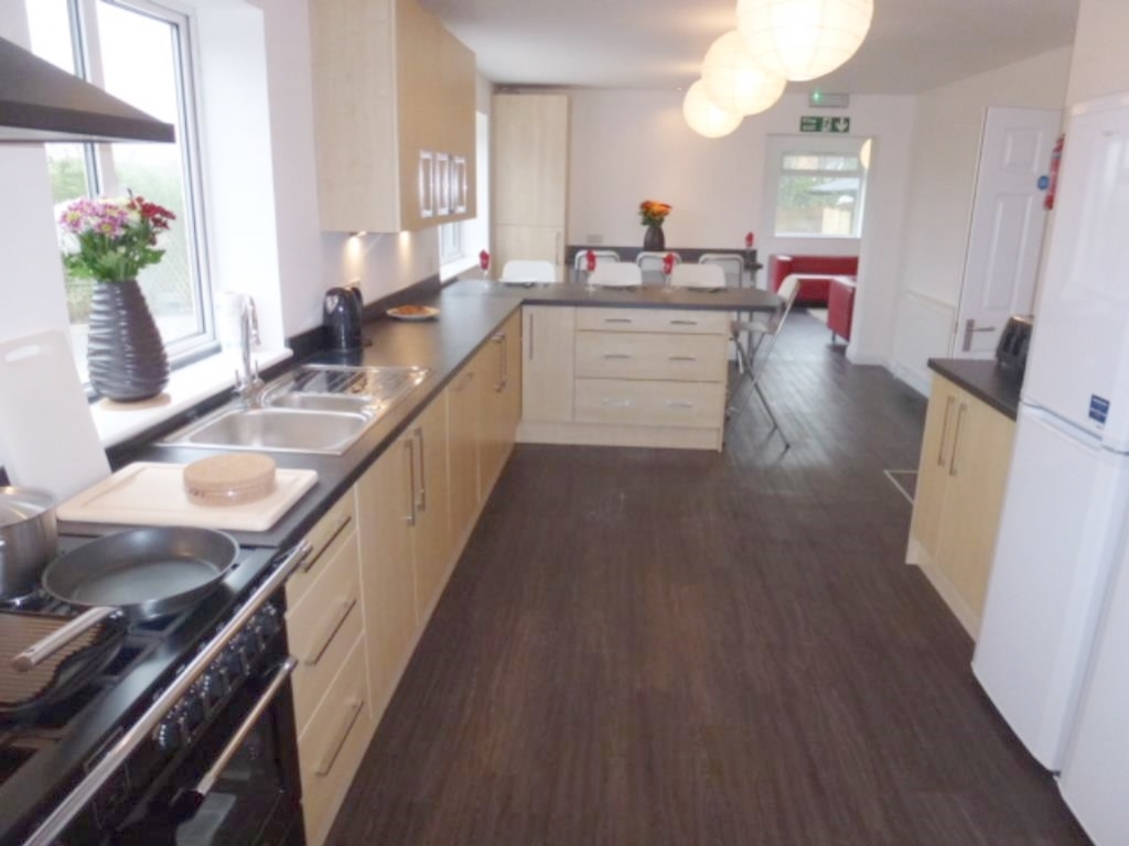 The room is bright and airy. There is a large, fully equipped communal kitchen with range oven, dishwasher, fridges and freezers. Each tenant has their own food storage cupboards. There is a separate laundry room with washing machines and tumble dryers.