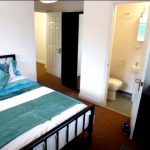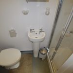 The bedroom is fully furnished with bed, mattress, bedside table with lamp, wardrobe, chest of drawers, mini-fridge, desk and chair. There is a TV connection and CAT 5 Broadband socket. The en-suite has a thermostatic shower.